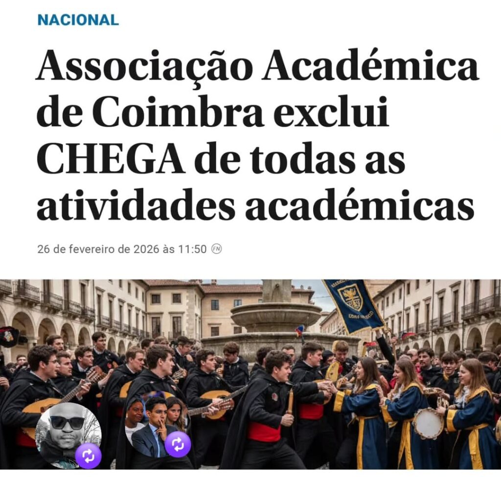 O Partido CHEGA do Distrito de Coimbra repudia, com a maior veemência, o documento oficial intitulado “Posicionamento Global da Associação Académica de Coimbra perante o Partido CHEGA”, datado de 1 de fevereiro de 2026 e subscrito pela Direção-Geral da AAC, onde esta instituição, se arroga no direito de excluir o maior partido da oposição portuguesa de todo o espaço académico, cívico e cultural de Coimbra.